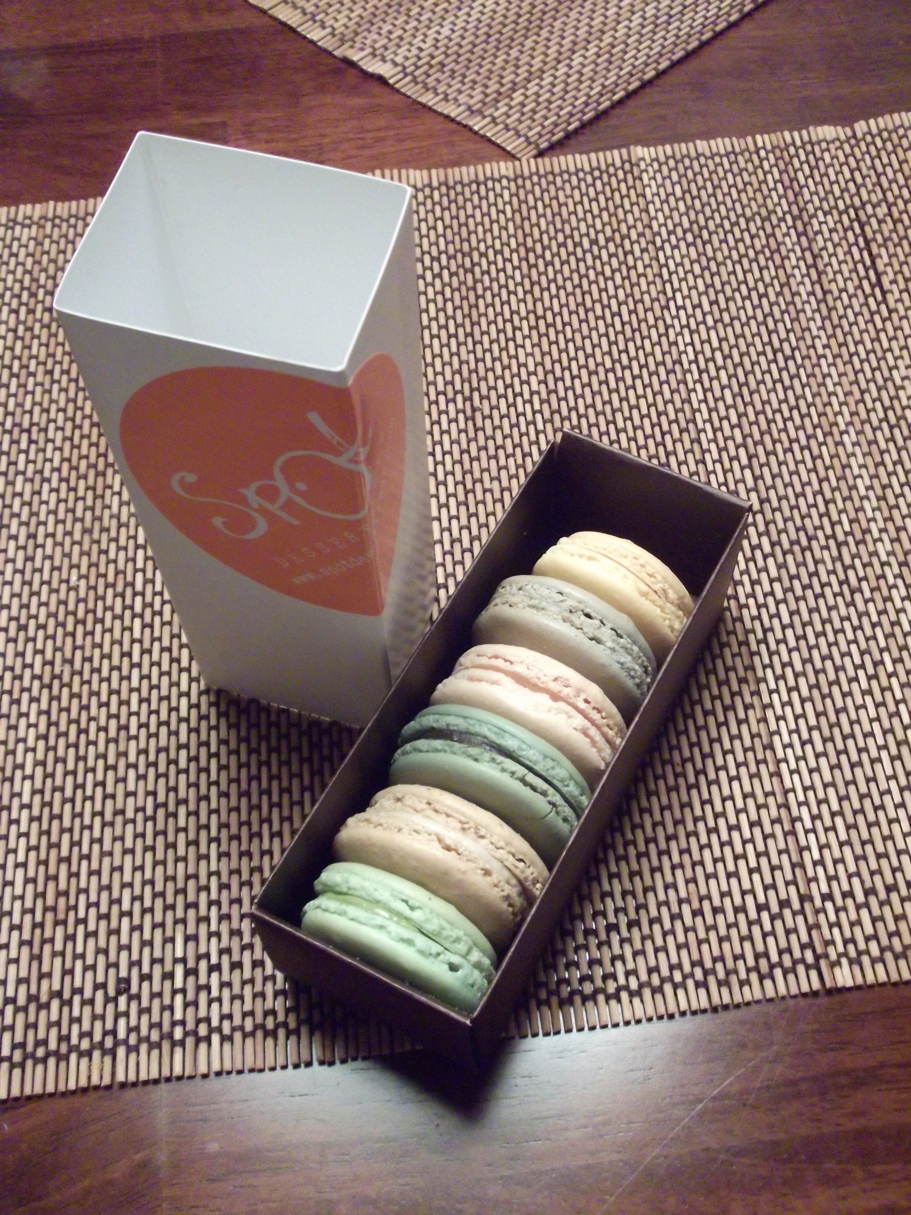 The Package: I liked the little box she put my macarons in: sturdy with a cute slip cover with logo. Simple, useful, unique.