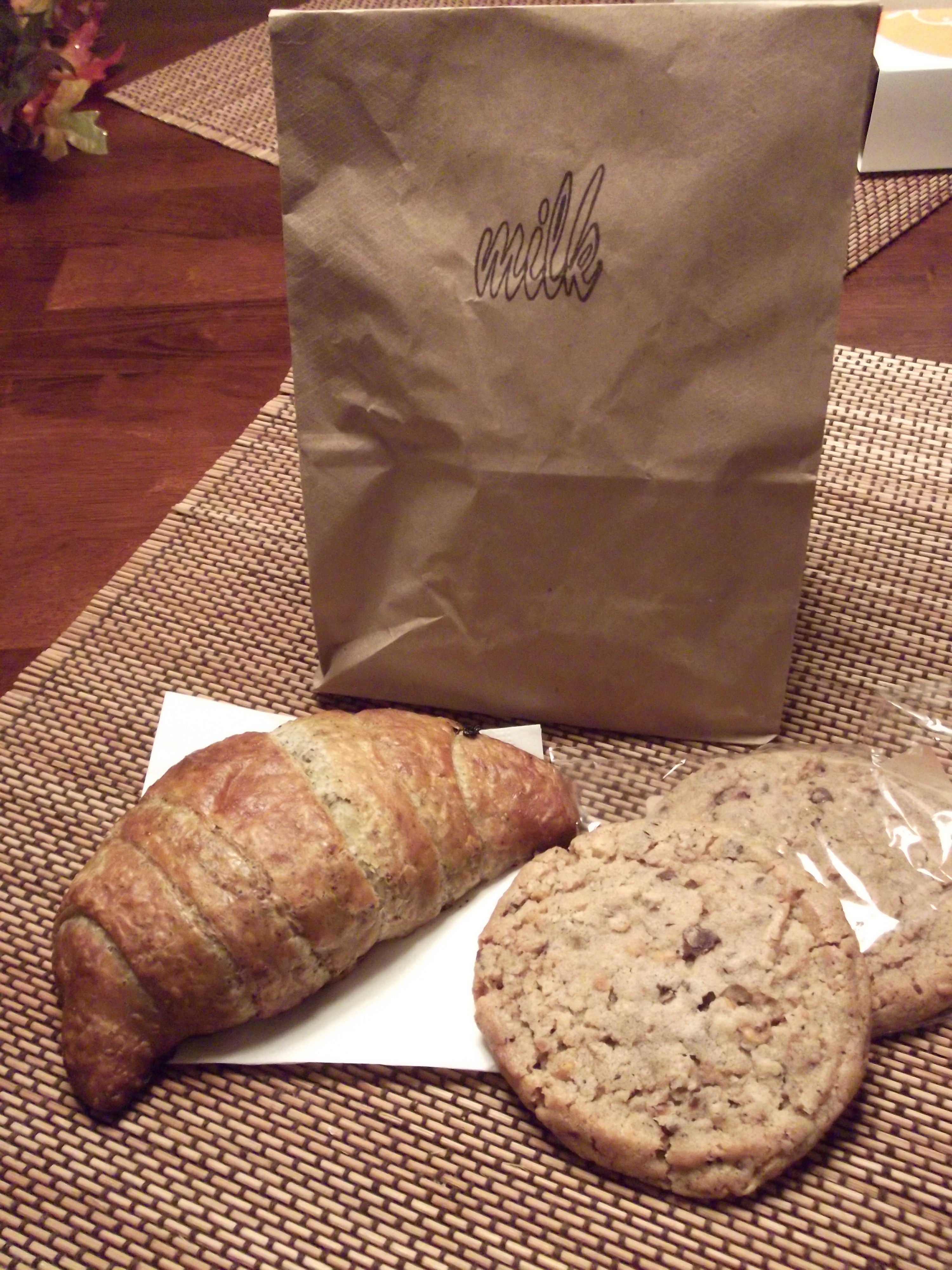 Purchased: two Compost Cookies and a Thanksgiving croissant, total $10.