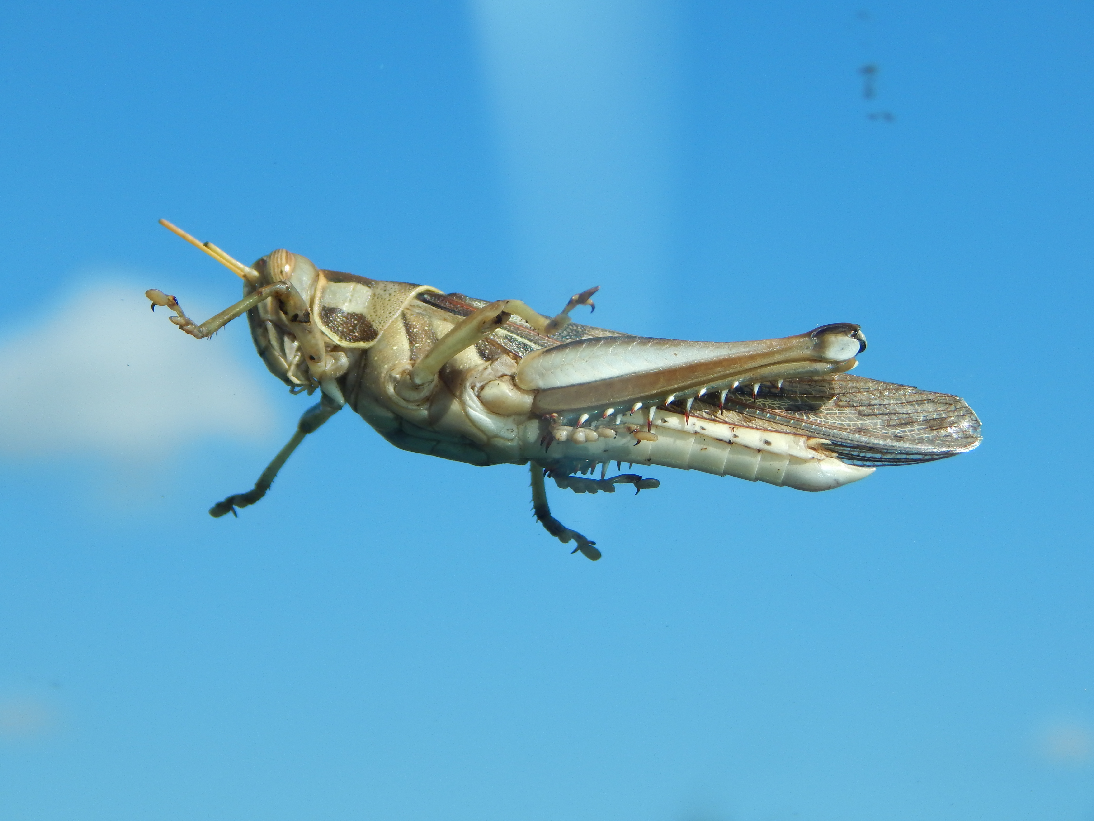 If we were getting a bit inured to the sight of impala and zebra, we sure woke up fast when we picked up a hitchhiker that plunked itself right in the middle of my field of vision.