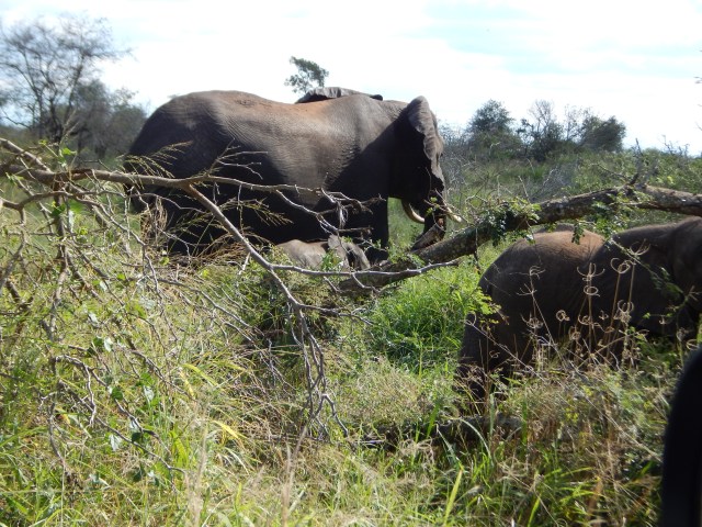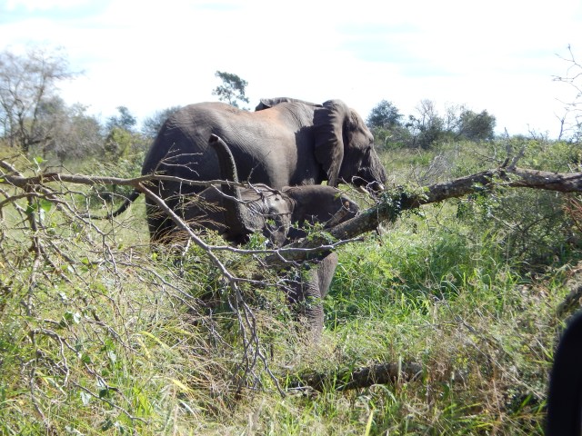 Again, we just sat there, watching them and marveling at how fortunate we were. But I started worrying for the lone mother elephant out and about with not one but two defenseless youngsters. Where was the rest of her herd? Had she not read the informational signage about the risks of alighting in the area? Did she miss that this particular stretch of this particular road, due to its plethora of lions, is considered the “carnivore capital” not just of Kruger but all of southern Africa?