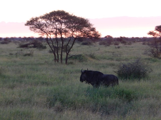 Truth be told I’m not 100 percent sure she’s a girl but either way, what a magnificent beastie. Here’s another impressive animal, a blue wildebeest spotted nearby as the sun slipped ever lower: