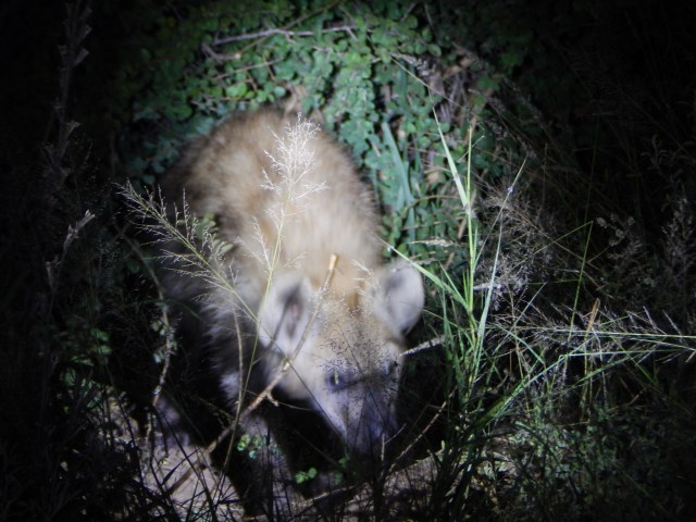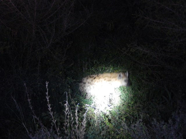 I worried a little bit about how disruptive it would be for the animals, coming from deer-in-the-headlights country and all, but it actually didn’t seem to bother the animals we did see, including jackals, more impala (so many impala), zebra and a spotted hyena that I did manage to get an image of: